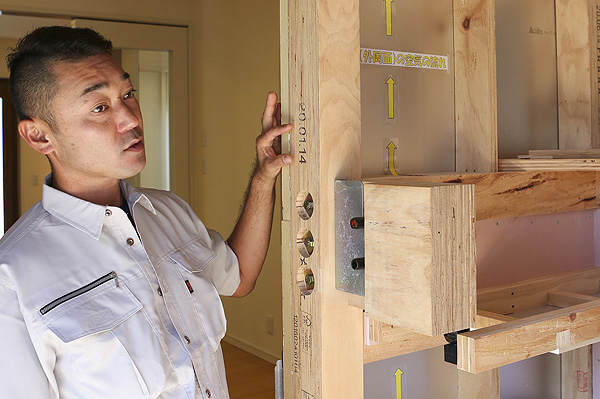 私たちは国内でも使っているところは珍しい「J-WOOD」という、品質が一定の木材を土台、柱、筋交い、間柱等までに使用しています。